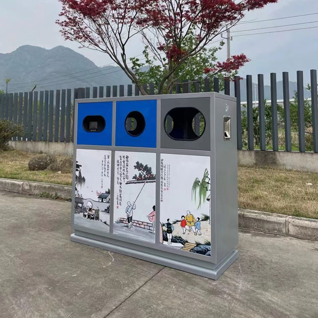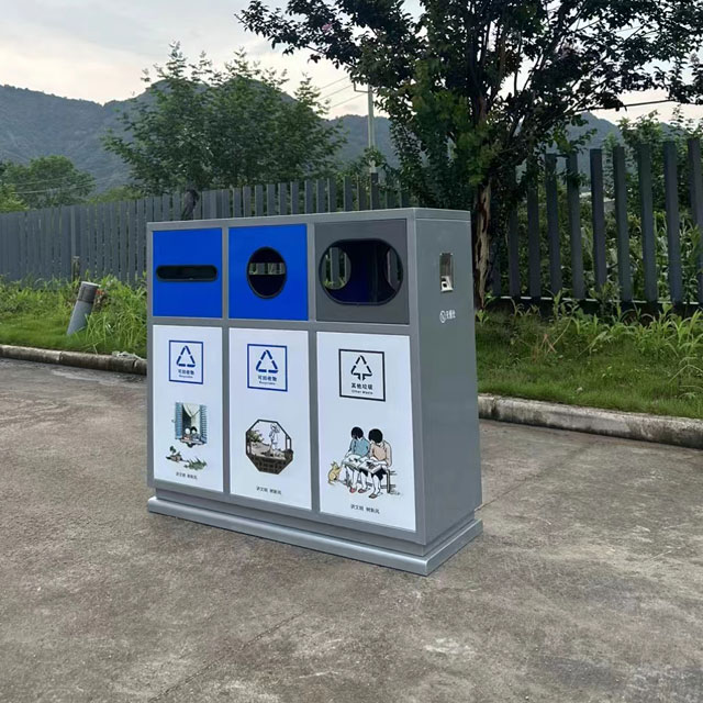 垃圾桶內(nèi)合理劃分可回收物、有害垃圾和其他垃圾三個(gè)區(qū)域。在城市街道上,行人喝完飲料后,可輕松將塑料瓶、易拉罐等可回收物放入相應(yīng)區(qū)域,這些物品將被回收再利用,實(shí)現(xiàn)資源循環(huán),減少資源浪費(fèi)。廢舊電池、過(guò)期藥品等有害垃圾,準(zhǔn)確投放到指定區(qū)域,避免對(duì)土壤和水源造成污染,守護(hù)城市生態(tài)環(huán)境。難以歸類(lèi)的其他垃圾,也能有專(zhuān)門(mén)的投放位置。清晰醒目的分類(lèi)標(biāo)識(shí)和簡(jiǎn)潔圖標(biāo),讓行人一眼就能明白如何投放,大大提高了垃圾分類(lèi)的效率和準(zhǔn)確性,推動(dòng)城市垃圾分類(lèi)工作順利開(kāi)展。人性設(shè)計(jì),方便行人投放