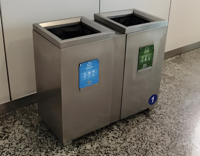 1.雙桶分區(qū):通過(guò)明確標(biāo)注“可回收物”與“其他垃圾”,引導(dǎo)乘客分類投放,助力城市垃圾分類政策的落地。部分定制方案還可增加“有害垃圾”獨(dú)立分隔倉(cāng)。
