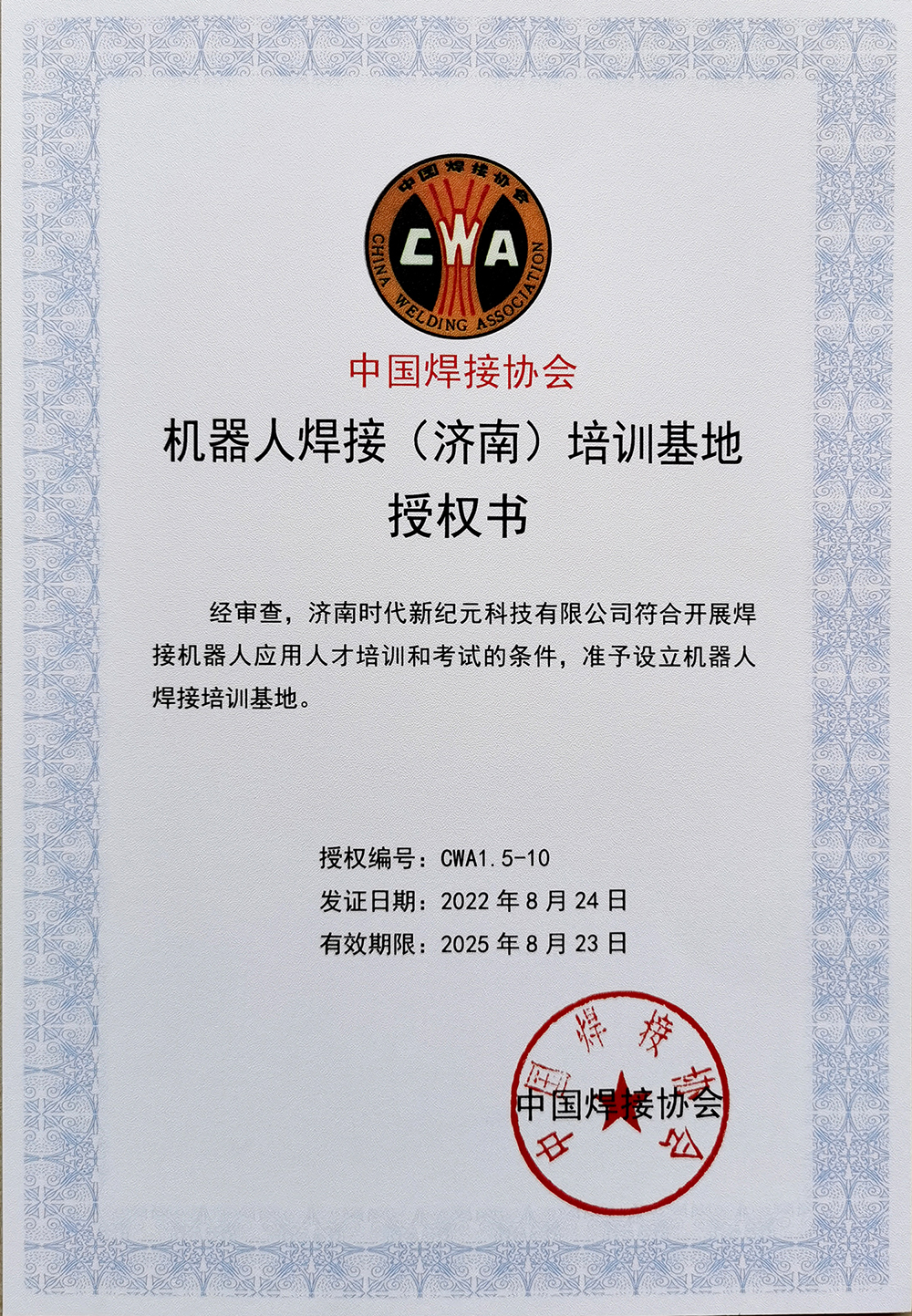 中國焊接協(xié)會(huì)機(jī)器人焊接(濟(jì)南)培訓(xùn)基地授權(quán)書