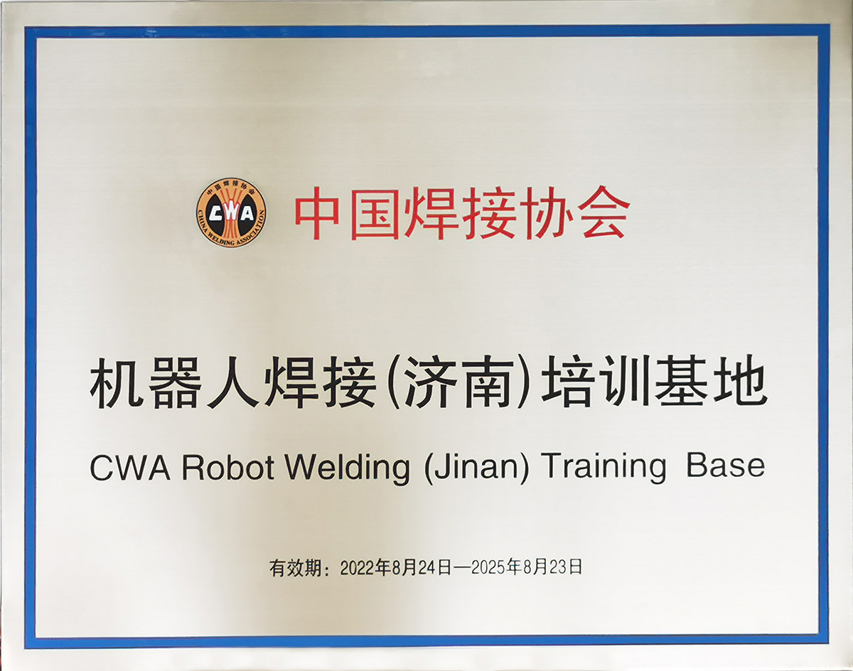 中國焊接協(xié)會(huì)機(jī)器人焊接(濟(jì)南)培訓(xùn)基地銅牌