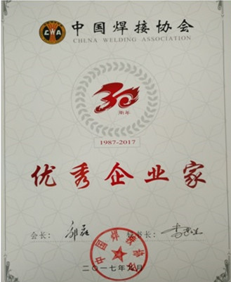 翟總獲得“中國(guó)焊接行業(yè)優(yōu)秀企業(yè)家”榮譽(yù)