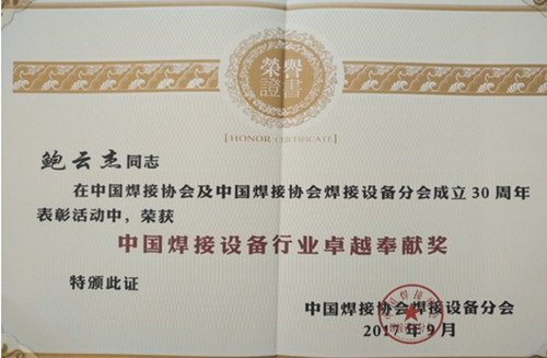 鮑云杰榮獲“中國(guó)焊接設(shè)備行業(yè)卓越奉獻(xiàn)獎(jiǎng)”榮譽(yù)