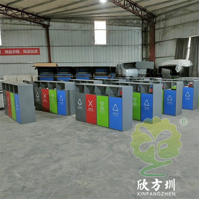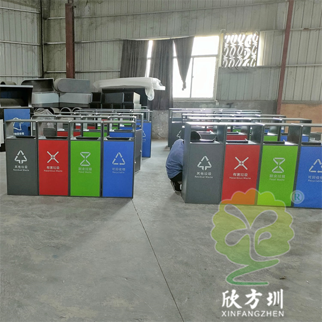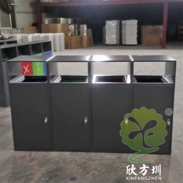 室外小區(qū)四色不銹鋼分類垃圾箱采用了201#不銹鋼1.0mm厚的板生產(chǎn)而成,桶身表面噴塑烤漆了灰色,正面門板噴塑烤漆了四種顏色,分別有其他垃圾灰色、有害垃圾紅色、廚余垃圾綠色、可回收物藍(lán)色,背面可使用三角鑰匙取出內(nèi)筒,方形連體無煙灰盅設(shè)計(jì),配備了鍍鋅板內(nèi)筒,這款產(chǎn)品支持定制兩分類三分類以及單筒。