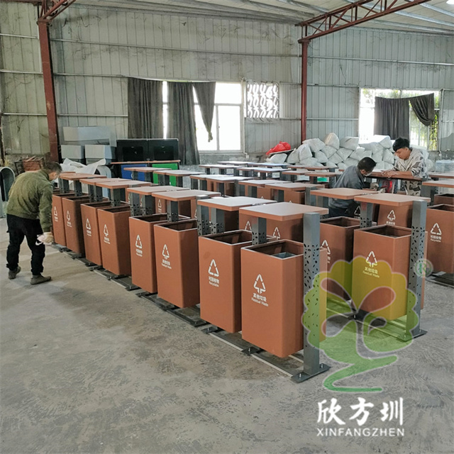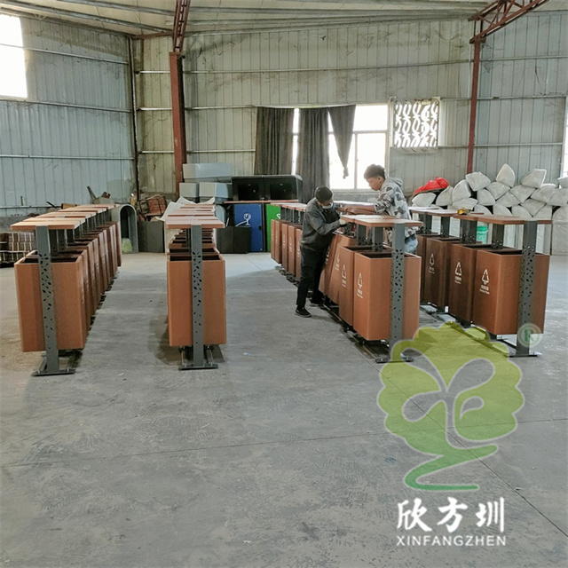 廣東惠州景區(qū)鏤空立柱不銹鋼分類垃圾桶整體1.0mm厚噴塑外筒,方形任意組合式多分類設(shè)計,可以選擇用不銹鋼板制作桶身,桶身表面噴涂噴塑了米白色,背后可使用三角鑰匙開始開門取出內(nèi)筒,內(nèi)筒鍍鋅板0.4mm厚,正面絲印了最新國標(biāo)分類標(biāo)識,有現(xiàn)成的網(wǎng)版可以免費絲印分類標(biāo)識。