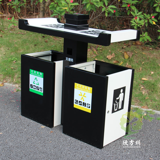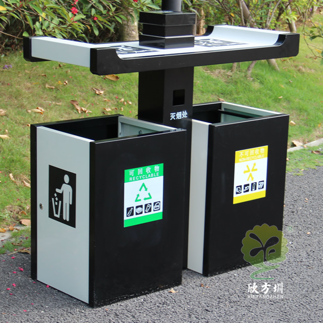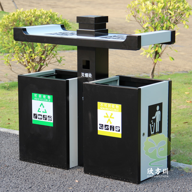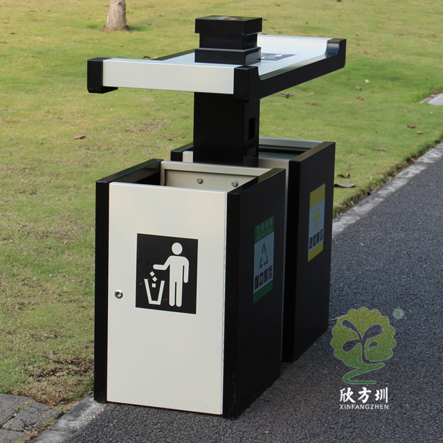 F348物業(yè)戶外鋼制噴塑分類垃圾箱,城市發(fā)展日新月異,人們對(duì)生活環(huán)境的衛(wèi)生要求也越來(lái)越高,沒(méi)有人可以容忍自己家園周圍看上去臟、亂、差。整治臟、亂、差,建設(shè)衛(wèi)生文明居住環(huán)境,是大部分城市的基本目標(biāo),居住環(huán)境的衛(wèi)生整治離不開垃圾桶的幫助,甚至垃圾桶本身就能成為城市文明的一道亮麗風(fēng)景線。沒(méi)有人愿意親近一個(gè)看上去布滿污漬,臟兮兮,充滿細(xì)菌的垃圾桶,而一個(gè)看上去干凈、衛(wèi)生、美觀的垃圾桶,除了人們更愿意往里面投垃圾外,本身就能起到裝飾美化的作用。欣方圳設(shè)計(jì)生產(chǎn)的物業(yè)戶外鋼制噴塑分類垃圾箱就完全滿足這樣的作用。